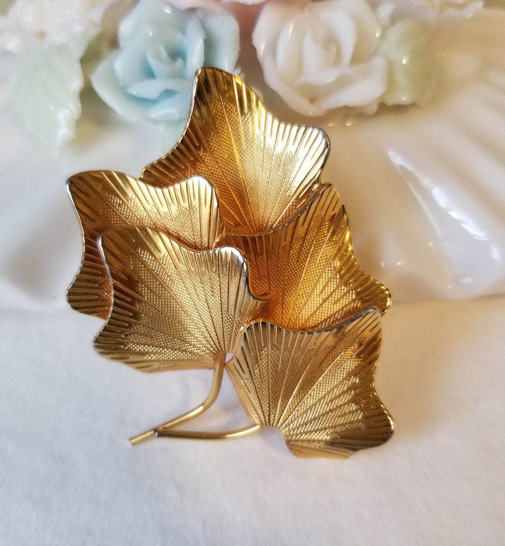 Vintage Textured Five Gold Tone Ivy Leaves Brooch Pin. The brooch is signed Coro with the Pegasus symbol with copyright (c) sign. Vintage from 1955. Coro jewelry without copyright (c) sign, were made before 1955, after 1955 all products were marked with copyright sign. Very detailed and textured Gold Plated Pin. In good vintage condition.