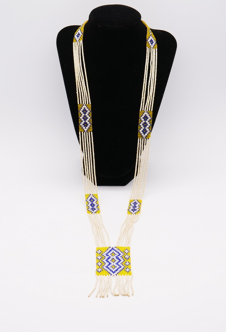 Beautiful Native American Beadwork Necklace. Nice pattern. The necklace is comprised of multicoloured, small seed beads. In great vintage condition.