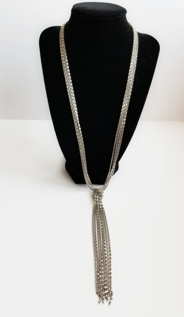 Very delicate Bohemian style necklace from mesh type of chain. Four strands of chains knotted in the middle of necklace. In excellent vintage condition. Not signed.